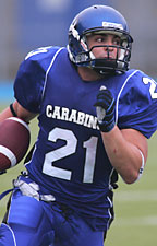 L’équipe de football des Carabins a vu 10 de ses joueurs être nommés au sein de l’équipe des étoiles de la Ligue de football universitaire du Québec (LFUQ). Ces nominations sont les plus nombreuses parmi toutes les équipes de la Ligue. En offensive, cet honneur est entre autres revenu au nouveau détenteur de record de l’association pour les verges au sol, le porteur de ballon Joseph Mroué (éducation physique), qui a obtenu 1046 verges en huit matchs. Trois joueurs de la ligne offensive des Bleus figurent également dans l’équipe des étoiles, soit le bloqueur Jean-François Morin-Roberge (arts et sciences) et les gardes Woodly Jean (HEC Montréal) et Alexandre Zara (HEC Montréal). Olivier Pellerin (relations industrielles) est pour sa part le seul receveur de l’UdeM à avoir été nommé au sein de l’équipe. Du côté de la défensive, l’ailier défensif Martin Gagné, comeneur au pays pour les sacs du quart-arrière avec huit, le secondeur Marc Trépanier (informatique), le demi-défensif Jean-Philippe Provencher (HEC Montréal) et le maraudeur Maxime Gagnier (Polytechnique) feront aussi partie de l’équipe des étoiles. Le marchand de vitesse Yves Bériault (arts et sciences) a quant à lui été un choix unanime comme spécialiste des retours de bottés. B.M. |