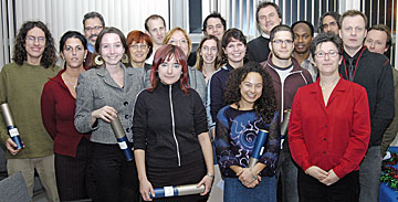 De nombreuses bourses ont été remises, le 5 décembre dernier, à des étudiants du Département de communication de la Faculté des arts et des sciences. Les bourses Jacqueline-Blouin, Allard Johnson Communications et Henri-Audet/ Faculté des études supérieures ont notamment été attribuées. Sur notre photo, de gauche à droite, à la première rangée: Marie-Pier Boucher, Élisabeth Mercier, Ana Ramos et Line Grenier; à la deuxième rangée: Elenka Alexandra, Nicole Dubreuil, Martha Crago, Joëlle Basque, Hélène Laurin, Normand Landry et Thierry Bardini; à la troisième rangée: Mathieu Chaput, Milton Campos, Jérémy Shtern, Maxime Juneau-Hotte, François Cooren, Gérard Nkuzimawa, Brian Massumi et Malcolm Cecil. |