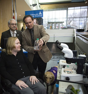 La bourse Barbara-Turnbull pour la recherche sur la moelle épinière a été décernée cette année au Dr Pierre Drapeau. Chercheur financé par les Instituts de recherche en santé du Canada (IRSC), le Dr Drapeau est directeur du Département de pathologie et biologie cellulaire de l’UdeM. La bourse constitue une reconnaissance des recherches du Dr Drapeau, qui portent sur le développement de la moelle épinière dans les embryons de poissons zébrés, un des meilleurs modèles du développement et de la génétique des vertébrés. Le Dr Drapeau a trouvé une façon de remplacer efficacement les gènes du poisson zébré par des gènes humains. Cette manipulation lui permet de pouvoir vérifier, sur un modèle animal, l’effet de mutations génétiques humaines dont on sait qu’elles entrainent des maladies de la moelle épinière et du cerveau. Il a récemment découvert que les signaux entre les cellules nerveuses étaient importants non seulement dans la moelle épinière arrivée à maturité, mais aussi dès les premiers stades de développement, pour la croissance de cellules nerveuses spécialisées et leur bon assemblage dans la moelle épinière. «Ce prix arrive à point nommé, explique le Dr Drapeau, tout juste au moment où j’installe mon nouveau laboratoire sur le campus. Il m’encourage à poursuivre de nouvelles pistes et m’incite à dire que des gens comme Mme Turnbull bénéficieront un jour des avancées que nous réalisons en laboratoire.» D’une valeur de 50 000 $, la bourse Barbara-Turnbull pour la recherche sur la moelle épinière est remise chaque année depuis 2001 afin d’appuyer un chercheur exceptionnel qui contribue à l’avancement de la recherche sur la moelle épinière au Canada. La bourse est financée par trois organismes nationaux: la Fondation Barbara-Turnbull pour la recherche sur la moelle épinière, la Fondation NeuroScience Canada et l’Institut des neuro-sciences, de la santé mentale et des toxicomanies des IRSC. |