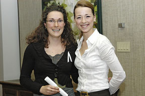 Le Comité permanent sur le statut de la femme de l’Université de Montréal commémore chaque année la tragédie du 6 décembre 1989 de l’École polytechnique. Afin de soutenir la recherche sur les meilleurs moyens d’enrayer la violence faite aux femmes, le Comité a lancé à l’automne 2005 un programme de bourses auprès des étudiants des cycles supérieurs.D’une valeur de 1500$, ces bourses sont accordées sur la base de la qualité du dossier scolaire, de la qualité scientifique du projet et de sa pertinence au regard des enjeux liés à la violence faite aux femmes. La boursière 2006 est Patricia Bourque, étudiante à la maitrise à l’École de criminologie, qui a reçu sa bourse des mains de la comédienne Karine Vanasse, invitée d’honneur, en présence d’Hélène David, vice-rectrice adjointe aux études. La comédienne a souligné l’importance pour la société de maintenir une grande vigilance quant à la condition des femmes et de réaliser des actions concrètes afin de contrer la violence qui leur est faite. Le projet de recherche de Patricia Bourque, dirigé par la professeure Mylène Jaccoud, porte sur les effets des ressources consultées par des femmes autochtones victimes de violence familiale. |