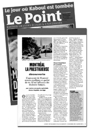Le Point, qui tire à près de 400 000 exemplaires, précise que l’Université de Montréal obtient une notoriété croissante dans le monde: «Ses quelque 3000 étudiants étrangers en font la première université internationale de langue française du Canada.»