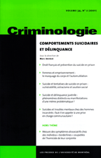 Criminologie, vol. 34, n° 2, Comportements suicidaires et délinquance, Presses de l’Université de Montréal, 2002, 15 $.