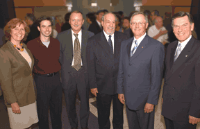 Le recteur Robert Lacroix a procédé à l’inauguration du nouveau centre en compagnie de la doyenne Irène Cinq-Mars (aménagement), de l’architecte Dominic Giguère, du doyen Patrick Vinay (médecine), du Dr Serge Montplaisir et du président du Mouvement des caisses Desjardins, Alban d’Amours. |