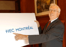 Le directeur de HEC Montréal, Jean-Marie Toulouse, présente le nouveau logo de son établissement, qui se veut plus moderne et plus représentatif sur la scène internationale. |