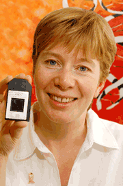 Sylvie Mader tient dans sa main une banque de données miniature d’une grande valeur: la micropuce d’ADN. |