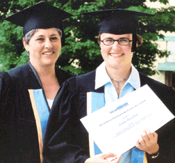 Le 25 juin dernier, au cours de la collation des grades de premier cycle de la Faculté de médecine, le Prix du Bureau d’information Becel sur la santé cardiaque a été attribué à Annie Beaulieu (à droite), diplômée en nutrition. La bourse de 1000 $ vise à souligner l’excellence des résultats obtenus par un diplômé de premier cycle en nutrition pour le cours et le stage portant sur la santé cardiovasculaire. Le prix a été remis par Marielle Ledoux, responsable des études de premier cycle au Département de nutrition.