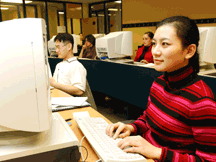 Lung-tor Sochea Da, étudiante de deuxième année à la Faculté de médecine dentaire, vient tous les jours utiliser un ordinateur au Carrefour de l’information et de l’apprentissage, entre deux cours. |