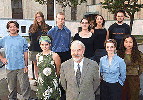 Comme chaque année, la Faculté des arts et des sciences a remis des Bourses du doyen à une dizaine de ses étudiants de premier cycle. Dans l’ordre habituel, au premier rang, Catherine Girard (histoire de l’art), le doyen Joseph Hubert, Josiane Richer dit Laflèche (anthropologie) et Gerciane Charles (relations industrielles); au second rang, Sébastien Langevin (physique), Marie-Andrée Laniel (philosophie), Louis Morel (sciences économiques), Marie-Claude Ménard (psychologie), Geneviève Goulet (arts et sciences) et Hugo Larochelle (informatique et recherche opérationnelle). Ne figure pas sur la photo Raphaëlle Derome (géographie). |
