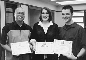 Sur la photo, de gauche à droite, Mathieu Fontaine, lauréat de la bourse Hubert-Reeves; Marie-Élisabeth Sicard, gagnante de la bourse Marie-Curie; et Mathieu Simard, qui a reçu la bourse Paul-Lorrain. |