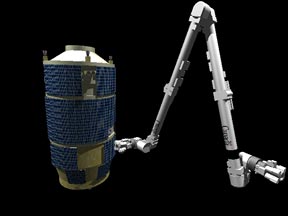 Le bras canadien manipulant un module de la station orbitale internationale, tel que Frédéric Armenjon, ancien stagiaire au GRCAO, l'a modélisé. Le logiciel SGDL permet de visualiser les zones d'interface et les mouvements du bras en plus de prévoir les risques de collision.