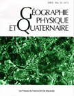 Géographie physique et Quaternaire, vol. 55, no 3, Les Presses de l’Université de Montréal, 2001, 312 p.