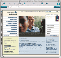 C’est afin de mieux répondre à ces exigences que l’Université a modifié l’interface graphique et l’arborescence de sa page d’accueil, dont la dernière version remontait à 1999. Selon M. Prégent, des modifications s’imposaient depuis que le nombre de consultations s’est accru de manière significative. En janvier 2003, quelque 1 200 000 pages Web ont été demandées sur le site d’accueil. Il s’agit d’une augmentation de 35 % comparativement à pareille date l’année dernière.