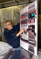 Espace imagé, où dominent le noir et le blanc, prend sa source dans la représentation mentale du milieu urbain où s’affrontent chaos et organisation.
