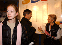 Mélanie Charlebois est venue de Saint-Jérôme pour visiter le Salon des études. Elle était accompagnée de son père, Donald Charlebois (à l’arrière-plan, en discussion avec la directrice de la promotion, Hélène Bernier). |
