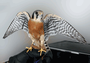 | Cette crécerelle d’Amérique a été recueillie par la clinique des oiseaux de proie à la suite d’un «kidnapping»: pensant bien faire, des gens recueillent des oiseaux de proie et ceux-ci deviennent incapables par la suite de survivre dans la nature. |