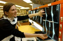 Tetyana Vyetrogon, étudiante de quatrième année, étudie les fractures des chevaux. |