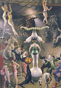e siècle, les artistes se sont très souvent représentés en saltimbanques et ont peint d’innombrables scènes de cirque ou de théâtre. Goya, Degas, Picasso, Daumier, Chagall, Toulouse-Lautrec, Léger ont laissé de grandes toiles sur ce thème.