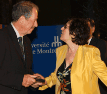 Le nouveau membre de l’Ordre du mérite, Denys Arcand, accompagné de la présidente de l’Association des diplômés, Andrée Grimard. |