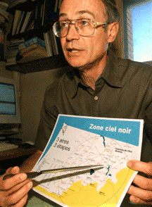 Pierre Bastien montre la zone de ciel noir devant s'étendre sur une centaine de kilomètres autour de l'OMM. |