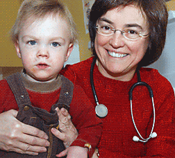 Simon Théorêt est né prématurément. Il est aujourd'hui pétant de santé. On le voit ici avec la néonatologiste Francine Lefebvre. |