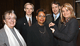 «Avoir la capacité de donner, c'est un privilège dans la vie.» C'est en ces termes que France Larue, technicienne en coordination de bureau, a salué les membres de la communauté universitaire qui étaient présents, le 7 décembre, au petit-déjeuner de Centraide du recteur. Outre Mme Larue, Céline Pilon, retraitée et responsable de la campagne Centraide sur le campus, Daniel Brière, représentant délégué de Centraide à l'Université, Sébastien Tassé, coordonnateur de la campagne Centraide, et Monique Garcia, technicienne à la Direction des immeubles, ont participé à l'organisation de ce petit-déjeuner annuel. Les commerces Le duc de Lorraine et Au pain doré ainsi que les Services auxiliaires de l'UdeM ont fourni muffins et croissants. Le fleuriste Mayfair avait fait parvenir un bouquet de fleurs. Sur notre photo, de gauche à droite, Céline Pilon, Daniel Brière, Monique Garcia, Sébastien Tassé et France Larue. |