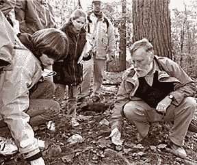 L'écologiste dirige huit étudiants à la maîtrise et au doctorat. On le voit ici dans le boisé des Muir, le plus beau laboratoire de l'UdeM. |
