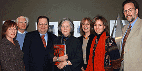 De gauche à droite, Élaine Éthier, conseillère en développement à la Faculté de l'aménagement, Colin H. Davidson, ex-doyen de la Faculté, Guy Berthiaume, vice-recteur aux affaires publiques et au développement, Aileen Desbarats, Irène Cinq-Mars, doyenne, Catherine Desbarats, fille de M. et Mme Desbarats, et Michel Gariépy, ex-doyen de la Faculté. |