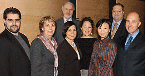 On reconnaît sur la photo, à la première rangée et de gauche à droite: Éric Couto, lauréat d’une bourse CRI-VIFF, Maryse Rinfret-Raynor, vice-rectrice à l’enseignement de premier cycle et à la formation continue et directrice du CRI-VIFF, Odette Basmaji, Karine Racicot, gagnante de l’autre bourse du CRI-VIFF, Dong Yi, à qui a été attribuée la bourse Basmaji, et Joey Basmaji; à la deuxième rangée, Joseph Hubert, doyen de la Faculté des arts et des sciences, et le vice-recteur aux affaires publiques et au développement, Guy Berthiaume. |