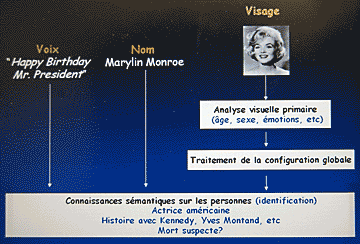 On peut accéder aux informations sur une personnes par trois «portes» : la voix, le nom et le visage. chez les patients atteints d'agnosie des personnes, aucune de ces portes ne fonctionne. |