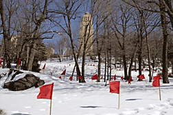 Les étudiants ont planté des drapeaux rouges à certains endroits du campus. |