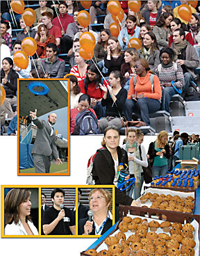 Plusieurs centaines d’étudiants qui mettent les pieds à l’Université pour la première fois cette année ont participé, le 6 septembre, au petit déjeuner auquel les avait conviés le recteur, Luc Vinet, au stade du CEPSUM. M. Vinet et la vice-rectrice à la vie étudiante, Martha Crago, ont offert les muffins et le café aux étudiants, et ont aussi adressé des mots de bienvenue. «C’est une belle façon pour le recteur de voir les étudiants et pour les étudiants de voir le recteur. Du même coup, ils peuvent se familiariser avec le stade», a souligné Mme Crago à l’issue du petit déjeuner. Mme Crago a ajouté que d’autres activités d’accueil avaient été organisées par les associations étudiantes et partout à l’Université. Par exemple, au Département de science politique, le directeur, Philippe Faucher, avait invité l’ex-ministre Joseph Facal à prononcer une conférence. «C’était bien parce que, déjà, les étudiants étaient placés dans leur milieu d’apprentissage», a mentionné Mme Crago. En plus de Luc Vinet et de Martha Crago, le secrétaire général de la FAECUM, Jonathan Plamondon, Joëlle Ganguillet, directrice du Bureau du développement et des relations avec les diplômés, et Michel Saint-Laurent, secrétaire général de l’Association des diplômés, ont souhaité la bienvenue aux étudiants. «Étudiant un jour, diplômé toujours», a lancé Mme Ganguillet en souriant. |