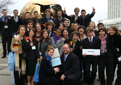 La délégation des Nations unies de l’Université a participé, en mars dernier à New York, au National Model United Nations, une des plus grandes simulations des Nations unies regroupant plus de 4000 étudiants. La délégation de l’UdeM s’est vu attribuer la représentation de l’Allemagne. Pendant près de sept mois, les 29 membres de la délégation, sous la supervision de leurs délégués en chef Annie Lespérance et Denis Côté, ainsi que de leurs conseillers facultaires Loïc Baumans et Charline Leduc-Marcoux, se sont entrainés hebdomadairement en vue de la simulation. Leurs efforts et leur persévérance ont été récompensés puisqu’ils ont obtenu, pour la première fois en 28 ans de participation à la simulation, le premier prix, soit le prestigieux Outstanding Delegation Award. La délégation était donc composée des étudiants suivants: les délégués en chef Annie Lespérance et Denis Côté; les conseillers facultaires Loïc Baumans et Charline Leduc-Marcoux; et les délégués Nadine Bader, Mihnea Bantoiu, Grégoire Bernèche, Gaël Bichotte, Laetitia Blais-Bigot, Fabien Clavier, Annabelle Creuzé, François Dansereau, Anne Echasseriau, Ana Maria Garcia Alvarez, Anne-Claire Gayet, Sébastien Gehu, Joanie Gosselin, Emmanuelle Grumiaux, Catherine Habel, Gregory Jaquet, Mathieu Kissin, Arthur Laferrière, Alexandre Mogharaei, Pierre-Axel Pejouan, Guillaume Perron-Piché, David Provencher, Audrey Reeves, Chloé Saint-Ville et Per Sogge. |